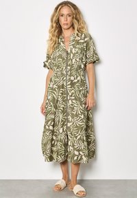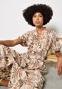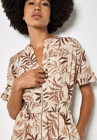 TROPICAL LEAF ZIP-DOWN MIDI - Robe chemise - stone