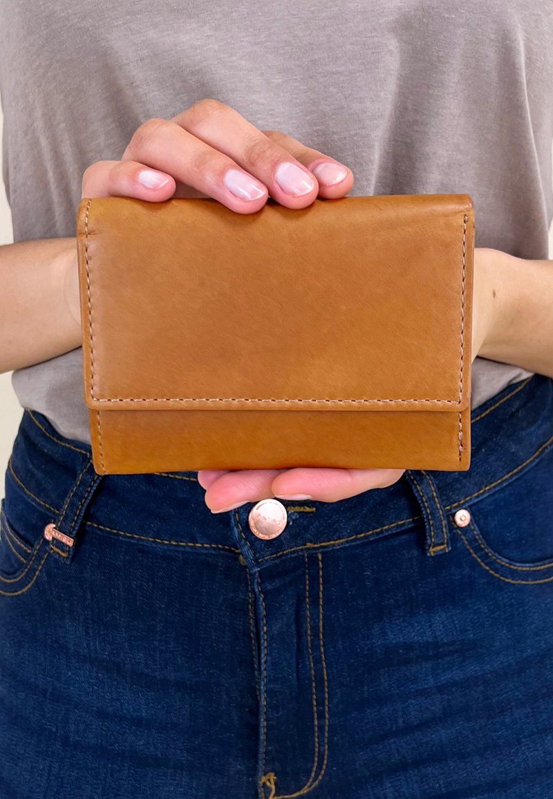 Avec "Tessa", le rangement rapide de la monnaie à la caisse n'est plus un problème. Après tout, cela prend déjà assez de temps pour emballer les achats. Que vous préfériez payer par carte ou en espèces,tout est rapidement à portée de main et disparaît tout aussi rapidement dans le porte-monnaie. Notre porte-monnaie esten cuir de vachette robuste etse ferme avec un bouton-pression.Au dos, il y a même un compartiment supplémentaire pour les tickets de transports en commun, ainsi vous n'avez pas besoin de chercher longtemps lorsque le contrôleur passe dans le bus. De plus, vous trouverez directement votre ticket et l'époque où vous pensiez "Au secours, j'ai perdu mon ticket" fera enfin partie du passé !