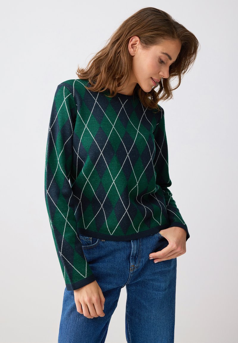 CREW NECK DIAMOND PATTERN BLEND - Pullover - dark green