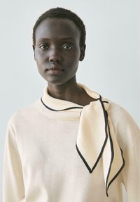 Strickpullover aus 100 % Baumwollgewebe. Lange Ärmel. Kragen mit Schleifendetail.