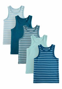 Cinq débardeurs en coton noir avec des encolures rondes, un design sans manches, une texture lisse et une coupe uniforme, présentés en ligne.