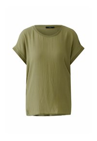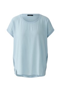 Haut noir à manches courtes avec un col rond, présentant une coupe décontractée et des fentes sur les côtés pour plus de liberté de mouvement. Fabriqué en tissu lisse et léger.