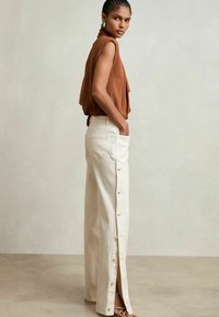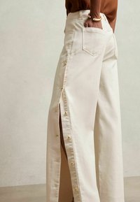 PETITE FIT- EVELYN SIDE BUTTON WIDE - Jean boyfriend - cream
