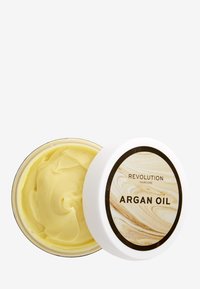 Le masque capillaire Revolution Hair Mask Moisturising Argan Oil rend les cheveux souples, soyeux et les enveloppe d'un parfum sucré. La vitamine E contenue dans l'huile d'argan hydrate le cuir chevelu et les cheveux et préserve leur brillance.
