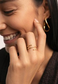 La bague la plus polyvalente est la bague Double Dot. Son design réglable vous permet de le porter vers l'avant ou vers l'arrière, selon vos préférences !