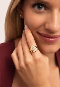 Le bijou le plus précieux. La chevalière rose célèbre notre 11e anniversaire. Cette bague chevalière est ornée de 10 zirconiums cubiques blancs éclatants et d'un zirconium rose, en hommage aux 11 années d'existence de Singularu. Célébrez cet anniversaire exceptionnel avec nous.