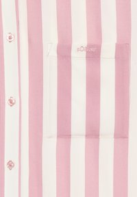 Chemise à manches longues à boutons avec rayures verticales roses et blanches, col pointu, poche poitrine et poignets élastiques.