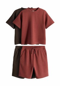 NextREGULAR FIT - SHORT SLEEVE T-SHIRT AND SHORTS SET 3 PACK . - Pantalon de survêtement - black brown neutral textured