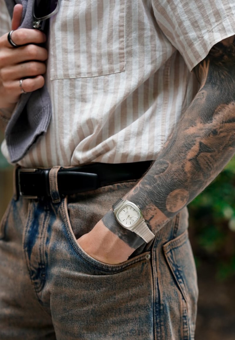 Lancée à l'origine en 1983, la Timex Automatic 1983 E-Line Reissue est une montre habillée classique qui se distingue par son boîtier carré arrondi affectueusement surnommé 'Cadran TV'. Pour cette réédition moderne, nous avons amélioré sa construction en acier inoxydable et l'avons équipée d'un mouvement automatique japonais Miyota calibre 8215 avec 21 rubis, ce qui en fait la première montre automatique de notre ligne de rééditions. Son profil élégant est complété par un bracelet extensible en acier inoxydable brossé et poli, amélioré avec notre technologie Perfect Fit, un cristal acrylique de style vintage et une fenêtre de date discrète parfaitement intégrée dans le cadran épuré à 3 heures.