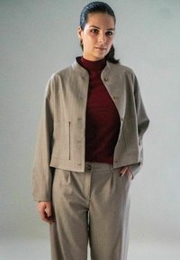 - 58% polyester, 25% viscose, 14% lin, 3% élasthanne